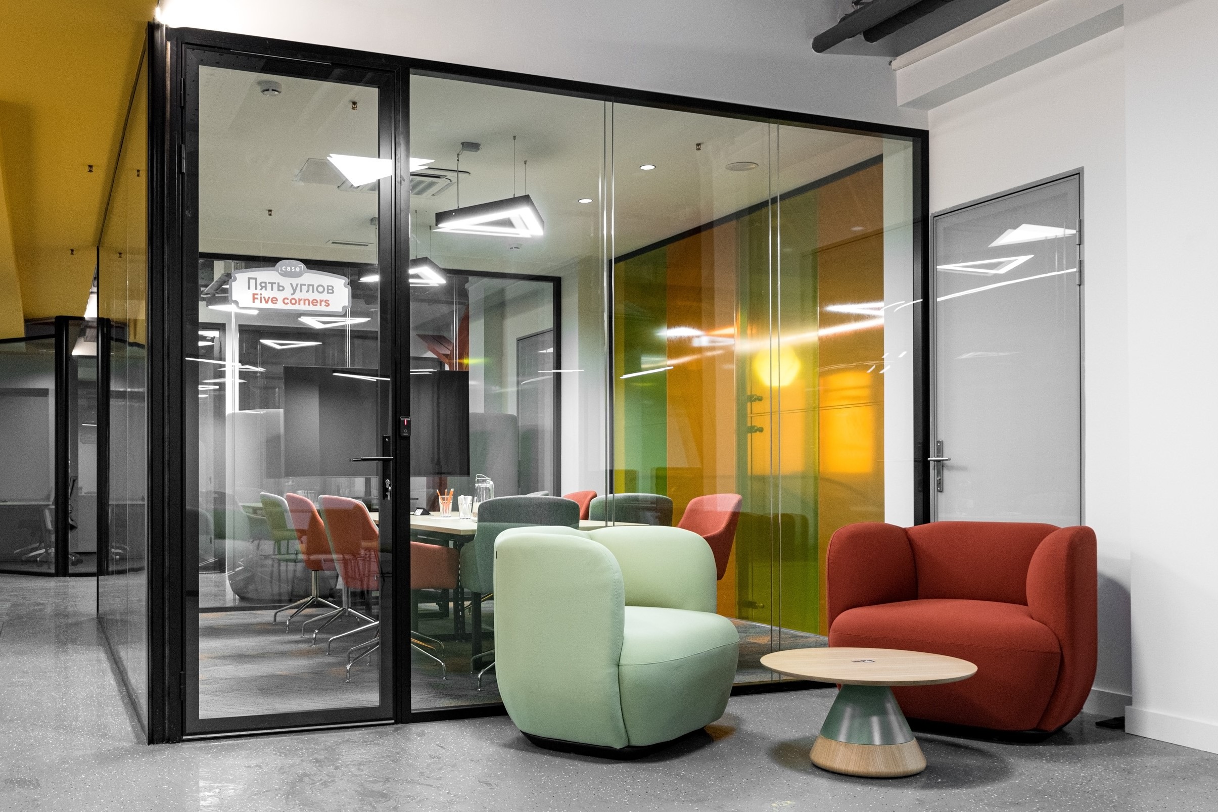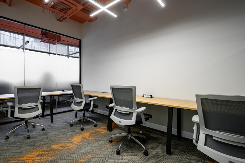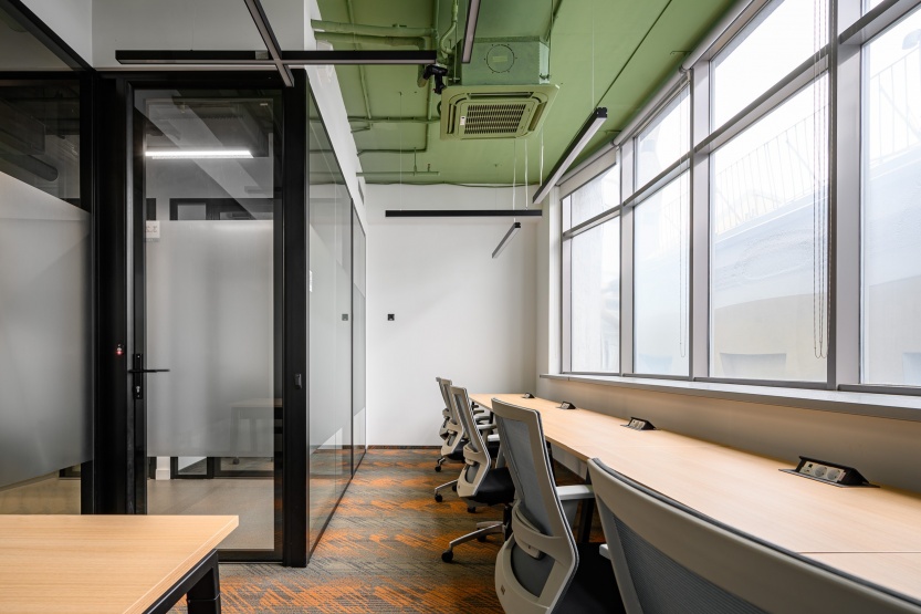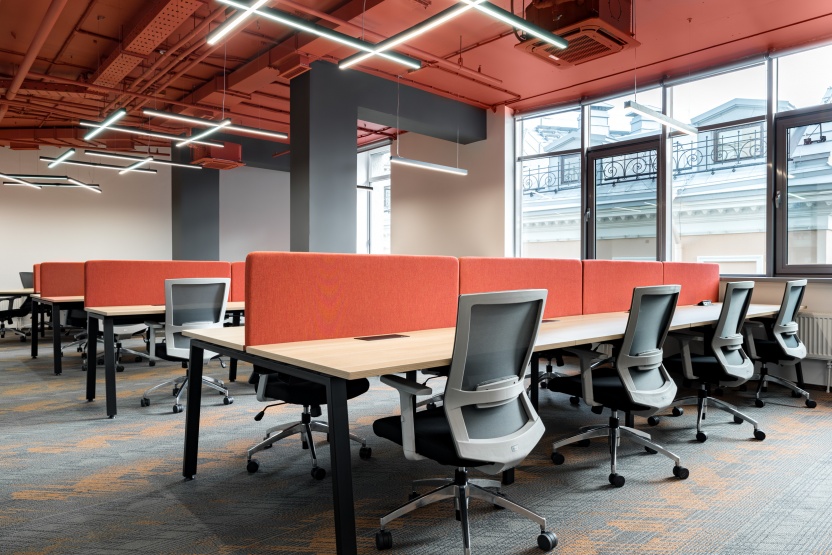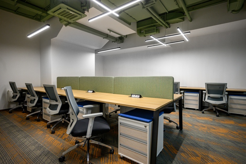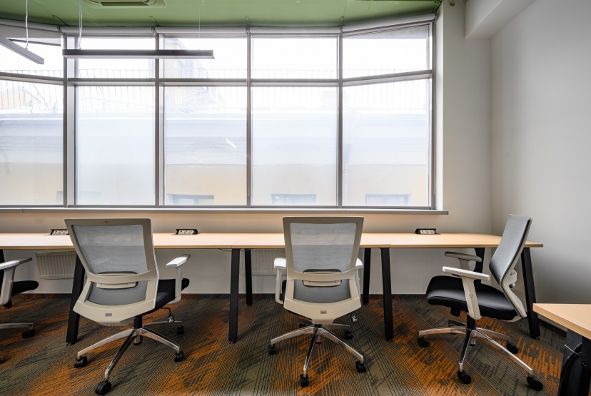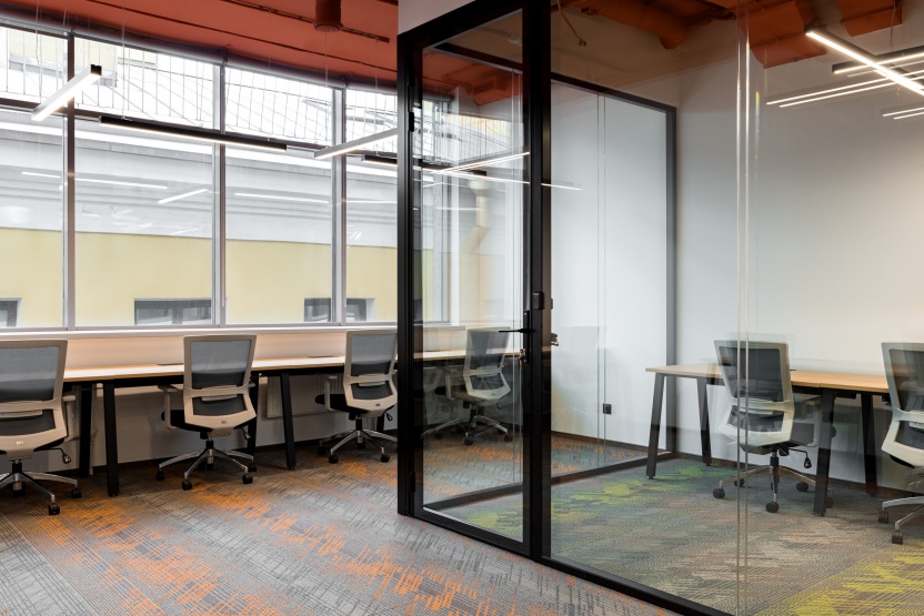 Отдельные офисы разной вместимости (от 1 до 24 рабочих мест) оборудованы современными рабочими столами, комфортным креслами. К каждому рабочему месту предусмотрено подключение локального интернета. Шумоизоляцию обеспечивает двухслойное остекление. Каждый кабинет обеспечен системой вентиляции и кондиционирования. Общая планировка коворкинга позволяет одной компании занять офис на 200 рабочих мест.