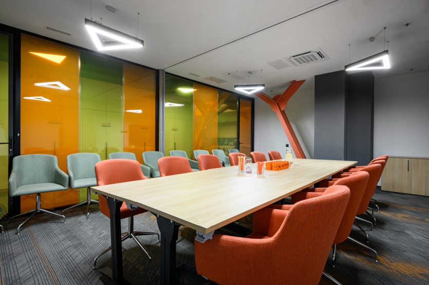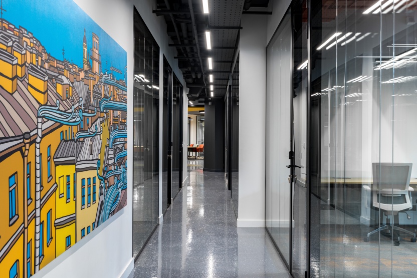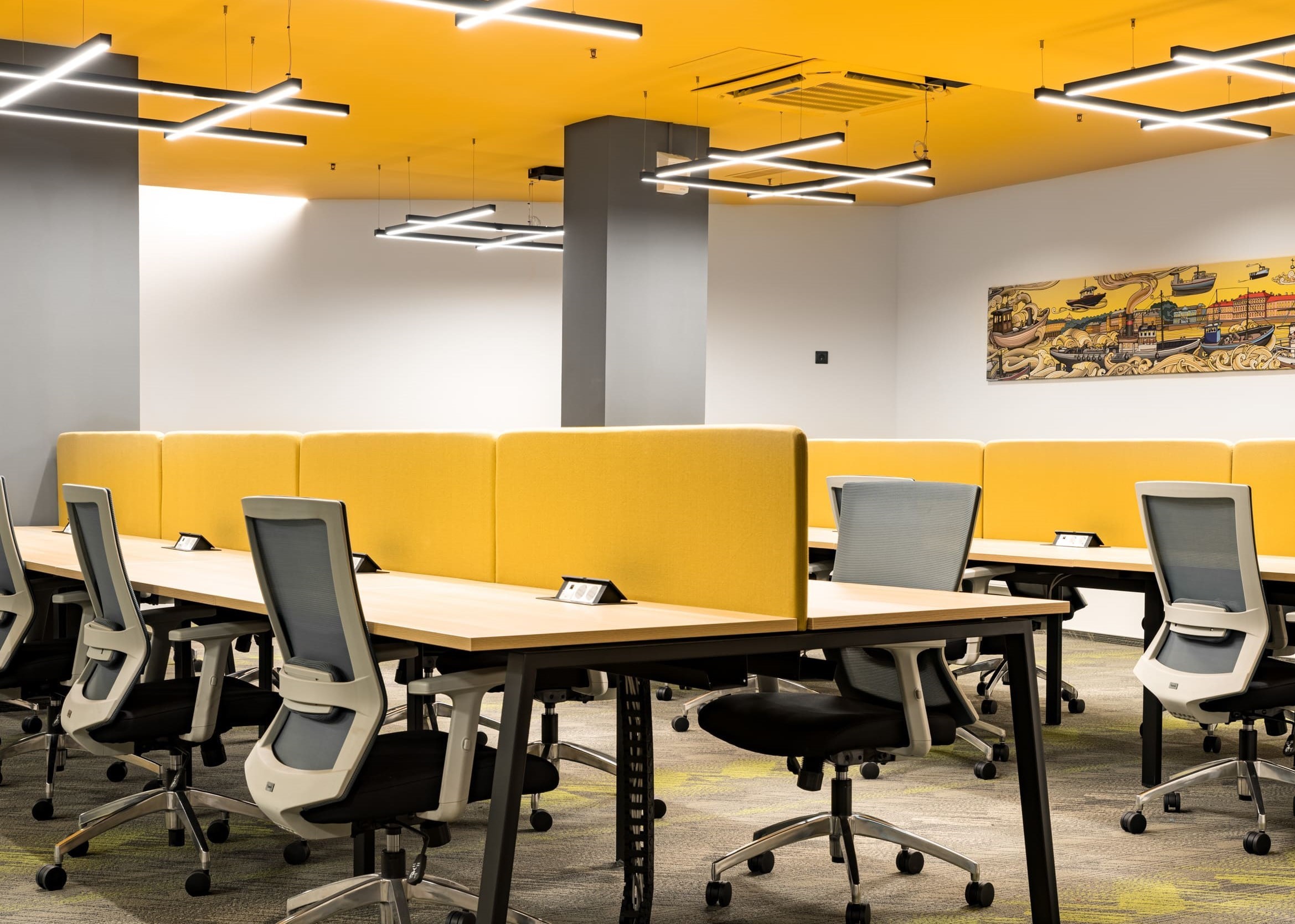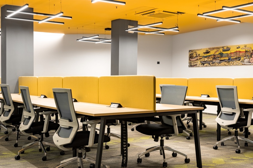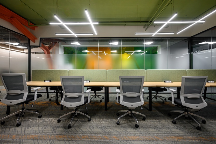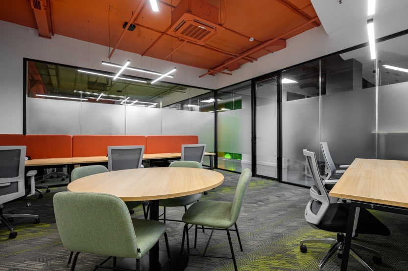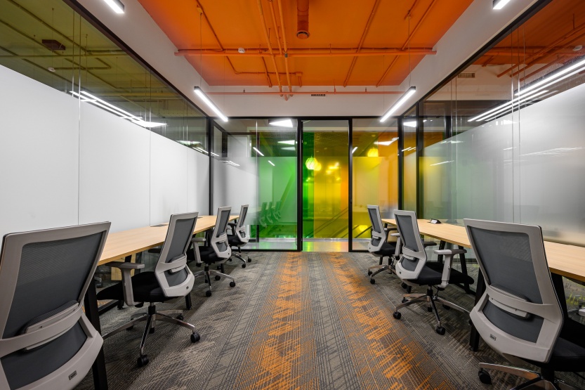 Отдельные офисы разной вместимости (от 1 до 24 рабочих мест) оборудованы современными рабочими столами, комфортным креслами. К каждому рабочему месту предусмотрено подключение локального интернета. Шумоизоляцию обеспечивает двухслойное остекление. Каждый кабинет обеспечен системой вентиляции и кондиционирования. Общая планировка коворкинга позволяет одной компании занять офис на 200 рабочих мест.