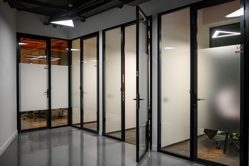 Высокий уровень шумоизоляции обеспечивают перегородки с двойным стеклом