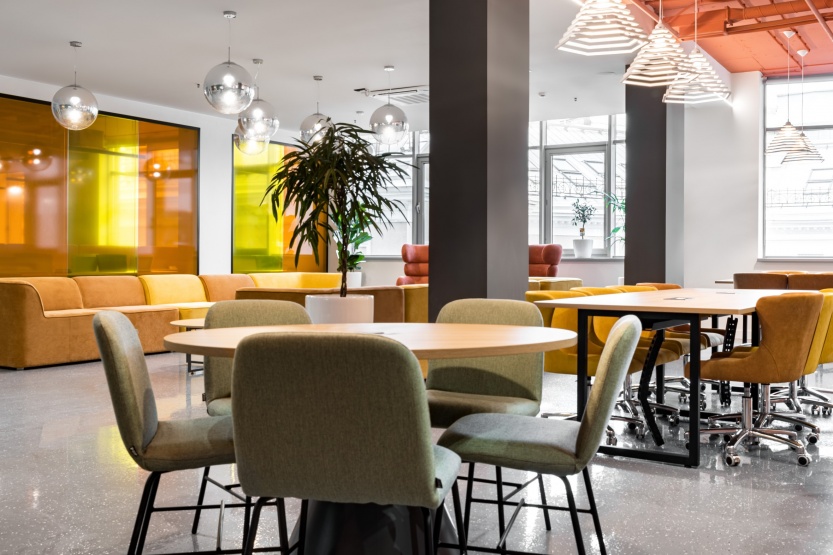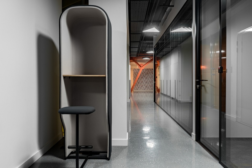 Пространство имеет две коворкинг-зоны. Первый коворкинг - шумный. Он находится в общем блоке около входной группы. В нескольких шагах располагается вся инфраструктура - кухня, комната отдыха и игровая. Второвой коворкинг - тихий. Располагается в дальнем видовом блоке нашего пространства. Для удобства арендаторов в данной точке стоит отдельный МФУ и неподалеку coffee point.