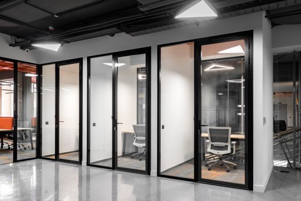 Отдельные офисы разной вместимости (от 1 до 24 рабочих мест) оборудованы современными рабочими столами, комфортным креслами. К каждому рабочему месту предусмотрено подключение локального интернета. Шумоизоляцию обеспечивает двухслойное остекление. Каждый кабинет обеспечен системой вентиляции и кондиционирования. Общая планировка коворкинга позволяет одной компании занять офис на 200 рабочих мест.